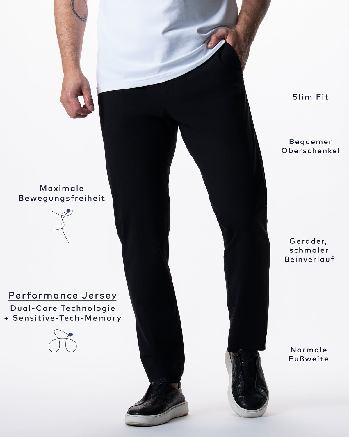 Die IOS PANTS sind moderne Performance-Hosen für Männer, die Business-Tauglichkeit, Komfort und Stil verbinden.