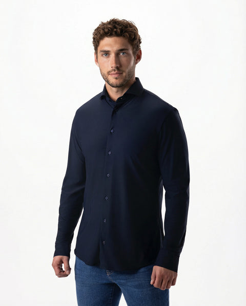 Das Hemd setzt auf innovative Funktionsstoffe, die sich leicht waschen lassen und ihre Form behalten. Dadurch entfällt das Bügeln. Der Griff ist weich und bewegt sich angenehm mit, was im Alltag und auf Reisen entspannter ist als bei vielen klassischen Baumwollhemden.